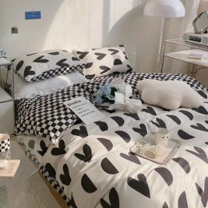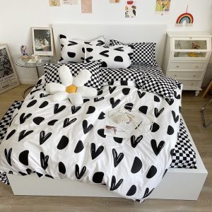 Bộ chăn ga gối Cotton poly M2T bedding gồm vỏ chăn mền, drap ga giường và 2 vỏ gối nằm – PL Tim khuyết đen