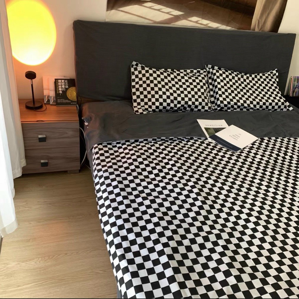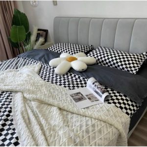 Bộ chăn ga gối Cotton poly M2T Bedding, vỏ chăn mền, drap ga giường và 2 vỏ gối – PL Bàn cờ vua đen nhỏ