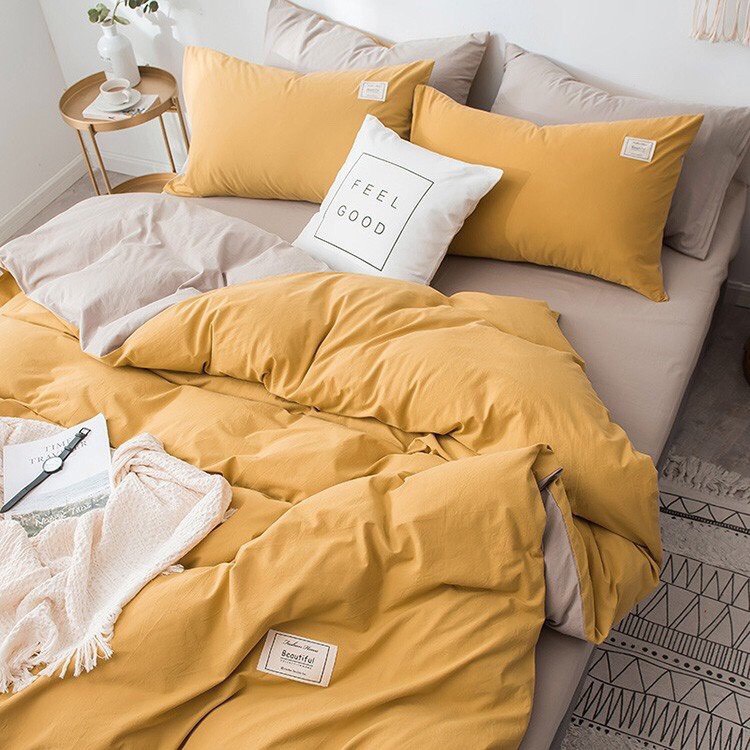 Không chỉ có vậy, sản phẩm còn có 2 màu sắc khác nhau trên mỗi mặt của chăn và gối, ga giường màu cố định, giúp bạn thay đổi màu sắc như mình có đến 2 bộ chăn ga gối nhưng chỉ phải bỏ tiền ra mua 1 bộ.
