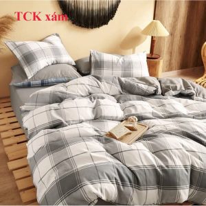 Bộ chăn ga gối Cotton Tici kẻ M2T Bedding – vỏ chăn mền, drap giường và 2 vỏ gối