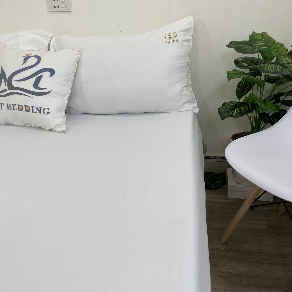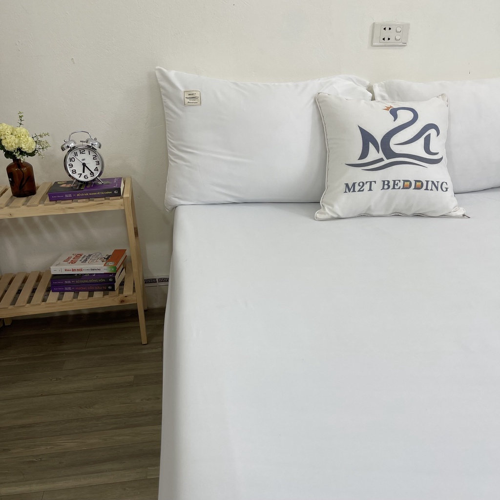 Sét ga gối Cotton Tici M2T bedding màu trắng drap ga giường chuyên dùng cho khách sạn, homestay, nhà nghỉ